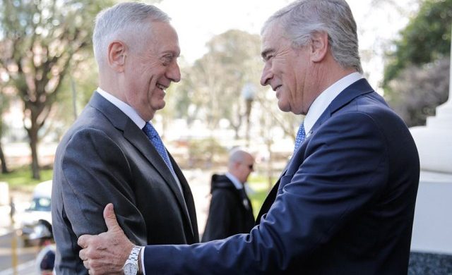 Americká a argentinská armáda budou blíže spolupracovat na nejrůznějších frontách, včetně vojenského vzdělání a výcviku. Na tom se dohodli v Buenos Aires ministr obrany USA James Mattis a jeho argentinský protějšek Oscar Aguad. Jedná se o první návštěvu amerického ministra obrany v Argentině po 13 letech.