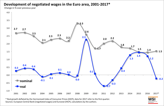 Němečtí výzkumníci, kteří se věnují problematice mezd, kolektivního vyjednávání a distribuce příjmů, Thorsten Schulten a Malte Luebker, píší pro Social Europe o důvodech nízkého růstu mezd v Evropě.