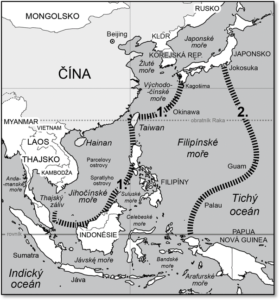 Spojené státy si v NSS 25 kladou za úkol vybudovat „armádu schopnou čelit agresi kdekoli v rámci Prvního ostrovního řetězce“. Jak ukazuje připojená mapa, tzv. první ostrovní řetězec se táhne od japonských ostrovů (někdy je uváděno od Kamčatky přes Kurilské ostrovy), k Filipínám, Borneu až k Malajskému poloostrovu. Velký důraz je kladen na to, aby Washington zůstal správcem situace v tchajwanské otázce, byť se v textu mluví o tom, že Spojené státy pouze nepodporují „unitární změnu status quo v Tchajwanské úžině“. Tchaj-wan je zároveň v NSS 25 vnímán jako brána k Druhému ostrovnímu řetězci vedoucímu od japonské Jokosuky, kde sídlí velitelství Sedmé flotily USA, přes ostrov Guam k ostrovu Nová Guinea a jako hranice dělící Asii na odlišná severní a jižní bojiště. (s. 23) Diplomaté USA by se měli zaměřit na to, aby „spojenci a partneři z Prvního ostrovního řetězce umožnili americké armádě větší přístup do jejich přístavů a dalších zařízení, aby více investovali do vlastní obrany, a především na investice do schopností zaměřených na odstrašení agrese“. (s. 24) V NSS 25 tolikrát opakovaný požadavek stability se tak mění v nebezpečný destabilizující aktivismus. Zdá se, že i nedávné provokativní vystoupení japonské premiérky na téma války o Tchaj-wan bylo s Washingtonem koordinováno.