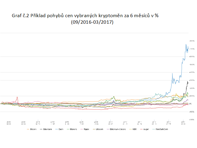Dalším rizikovým prvkem kryptoměn je jejich obrovská kolísavost či volatilita (graf č.2). Zatím se klíčové kryptoměny vyznačují obrovskými výkyvy své hodnoty na příslušných burzách. Kryptoměny jako investiční aktivum nedisponují žádným kolaterálem, jako investice představují silně spekulační aktivum, citlivě reagujícím na všechny změny na příslušných trzích a mediální humbuk kolem tohoto tématu.